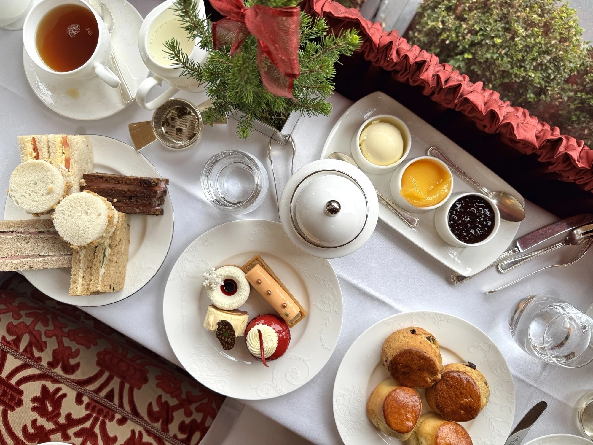 Stepping into The Rubens during the festive season feels like entering a warm Christmas embrace. Soft lighting, plush interiors, and a live pianist set the perfect cosy tone. I began with a steaming glass of mulled wine before choosing my tea — and, true to form, I went for the classic Rubens black tea, comforting and beautifully balanced.