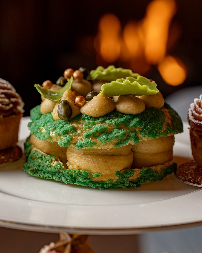 Indulge in beautifully designed sweets including the sharing pistachio Christmas wreath, or a gingerbread madeleine which follow buttermilk scones and a selection of classic festive sandwiches.