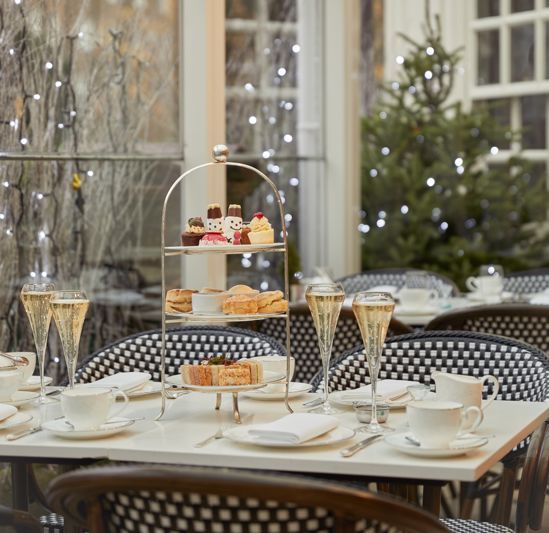 The menu features a selection of Christmas and classic pastries, including traditional mince pie and stollen cake. Festive Afternoon Tea is priced at £60pp or £70 per person and includes a glass of Mulled Wine (non-alcoholic alternatives are available).