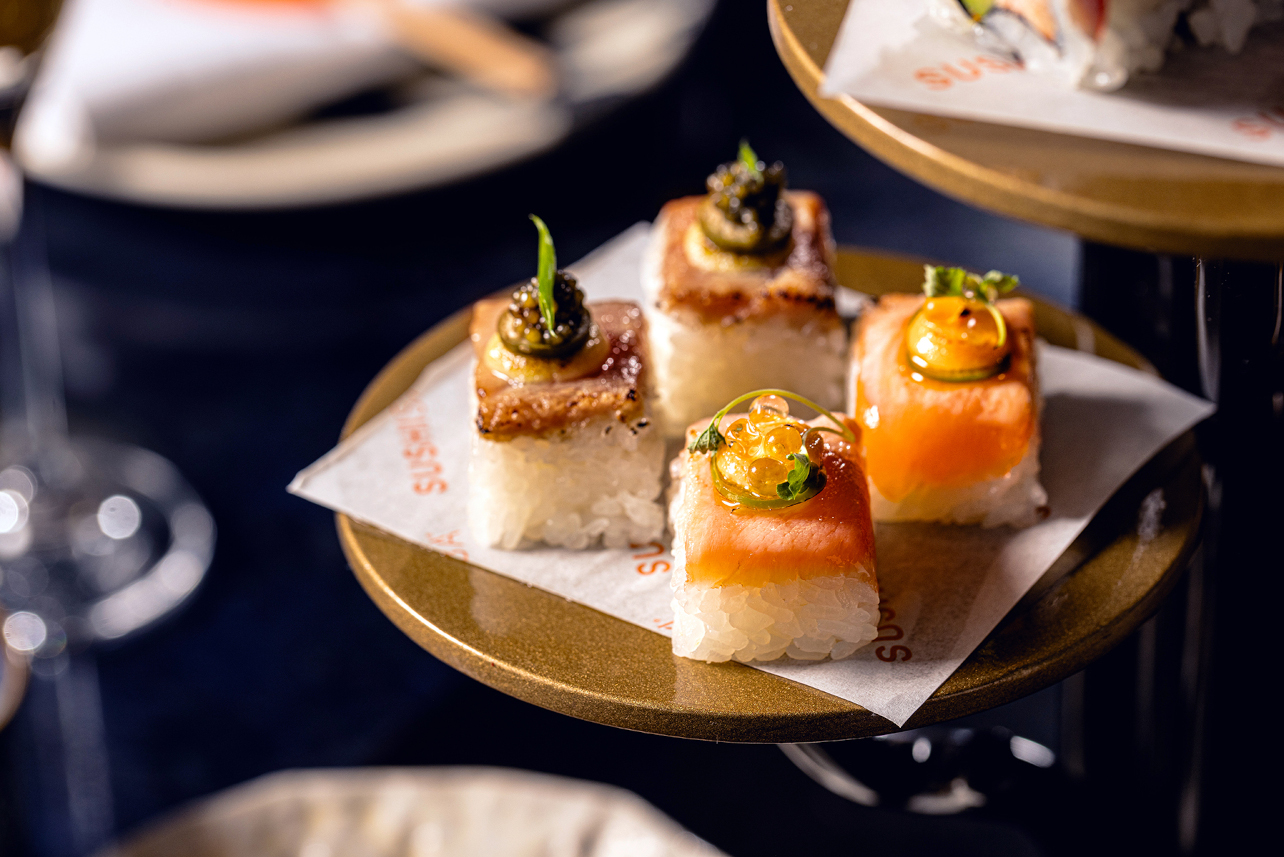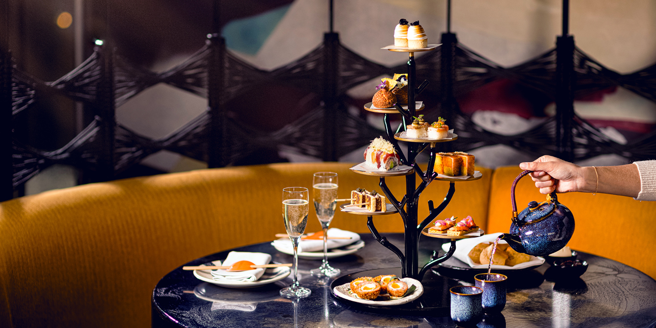 Afternoon Tea is reimagined at SUSHISAMBA Covent Garden, blending bold flavours, sweet and savoury treats, and a complimentary glass of Veuve Clicquot Champagne, all served on a striking three-tiered tree.
