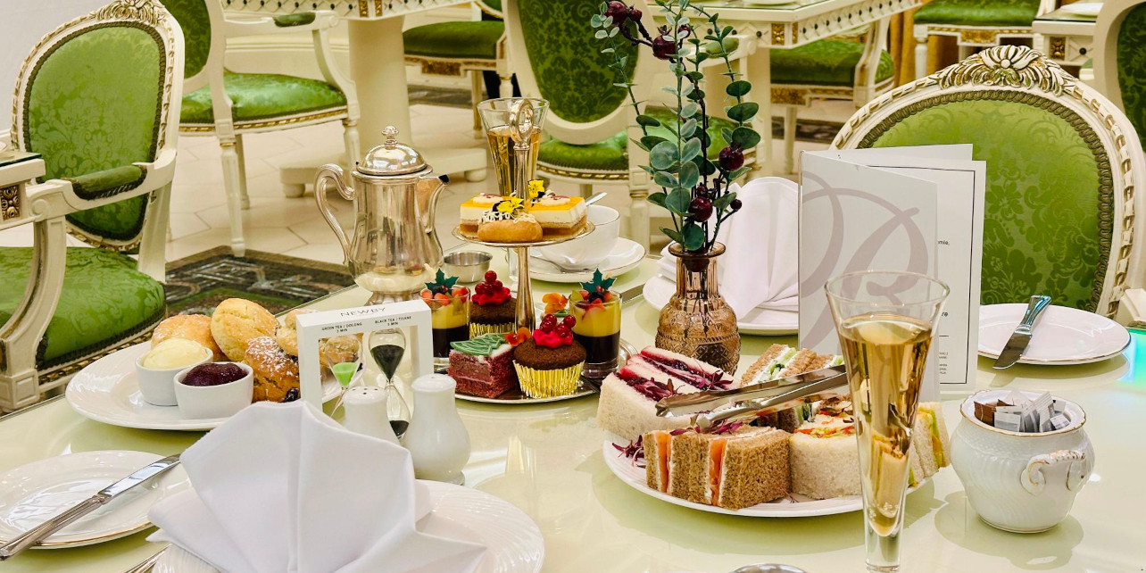 Guests are invited to enjoy Afternoon Tea in the elegant Peridot Restaurant, a beautifully decorated space with a light and airy atmosphere. The restaurant's sophisticated decor provides the perfect backdrop for an afternoon of luxurious dining.