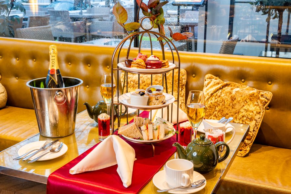 Afternoon Tea is served in the Terrace Restaurant, a beautiful space with floor-to-ceiling windows that flood natural light, creating the perfect space for enjoying Afternoon Tea with a glass of Prosecco or Champagne.