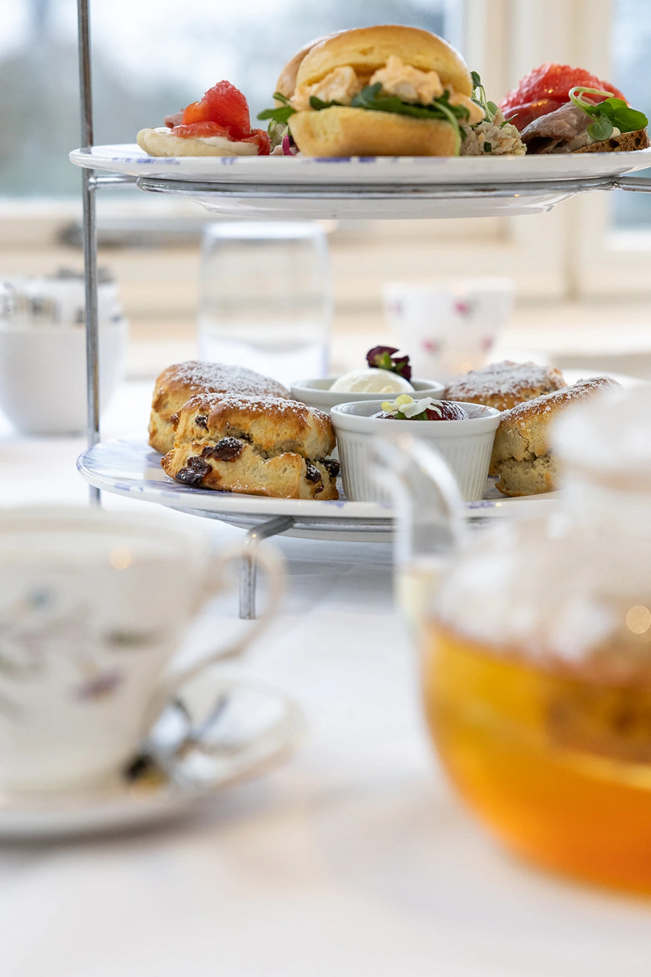 Afternoon Tea is served in the conservatory. This is a beautifully lit space, with natural light creating a warm, bright atmosphere. There is also access to the garden, so guests can enjoy a pre or post Afternoon Tea walk.