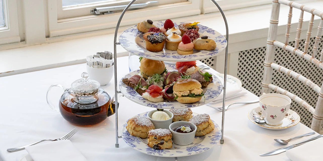 The menu features a traditional Afternoon Tea, including a selection of delicate finger sandwiches, and freshly baked scones with clotted cream and seasonal preserves. To finish it off, there are a selection of indulgent sweet treats, such as the coffee éclair with a tiramisu glaze, rhubarb & bergamot panna cotta and raspberry rosewater Victoria sponge pop.