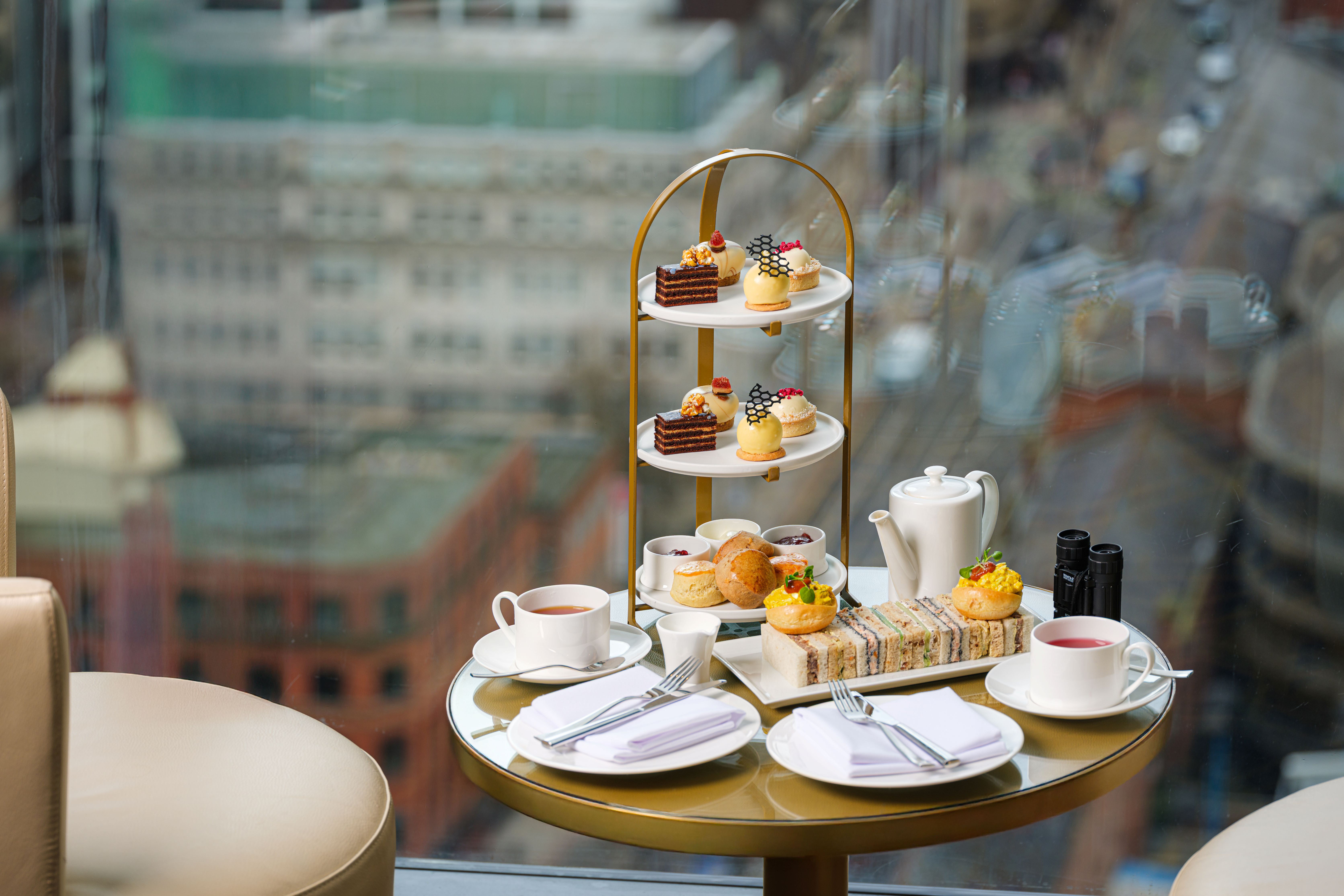 Afternoon Tea overlooking the Manchester skyline is available daily. Indulge in a delightful selection of savoury bites, desserts and scones paired with unlimited teas of your choice. Guests can also upgrade to a Champagne or Cocktail Afternoon Tea for a special treat! Enjoy a glass of Castelnau Classique Brut NV or a range of Cloud23's expertly crafted cocktails alongside a traditional Afternoon Tea.