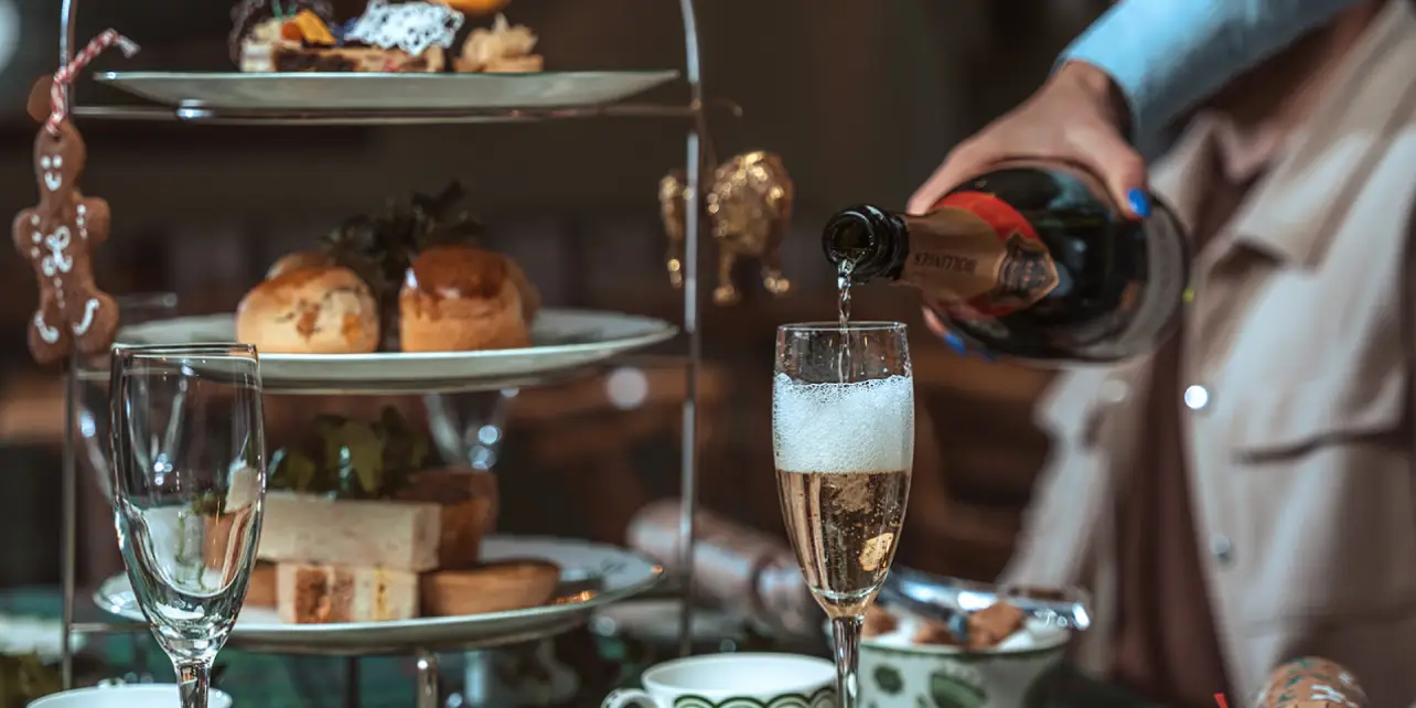 The menu leans into the season with warming savouries such as chestnut & sage sausage rolls and turkey brioche, followed by panettone-spiced scones with clotted cream. A selection of handcrafted winter desserts, ranging from spiced bakes to refined patisserie, brings a considered festive finish. Guests may enhance the experience with premium English sparkling wines, Champagne or a choice of seasonal signature cocktails.