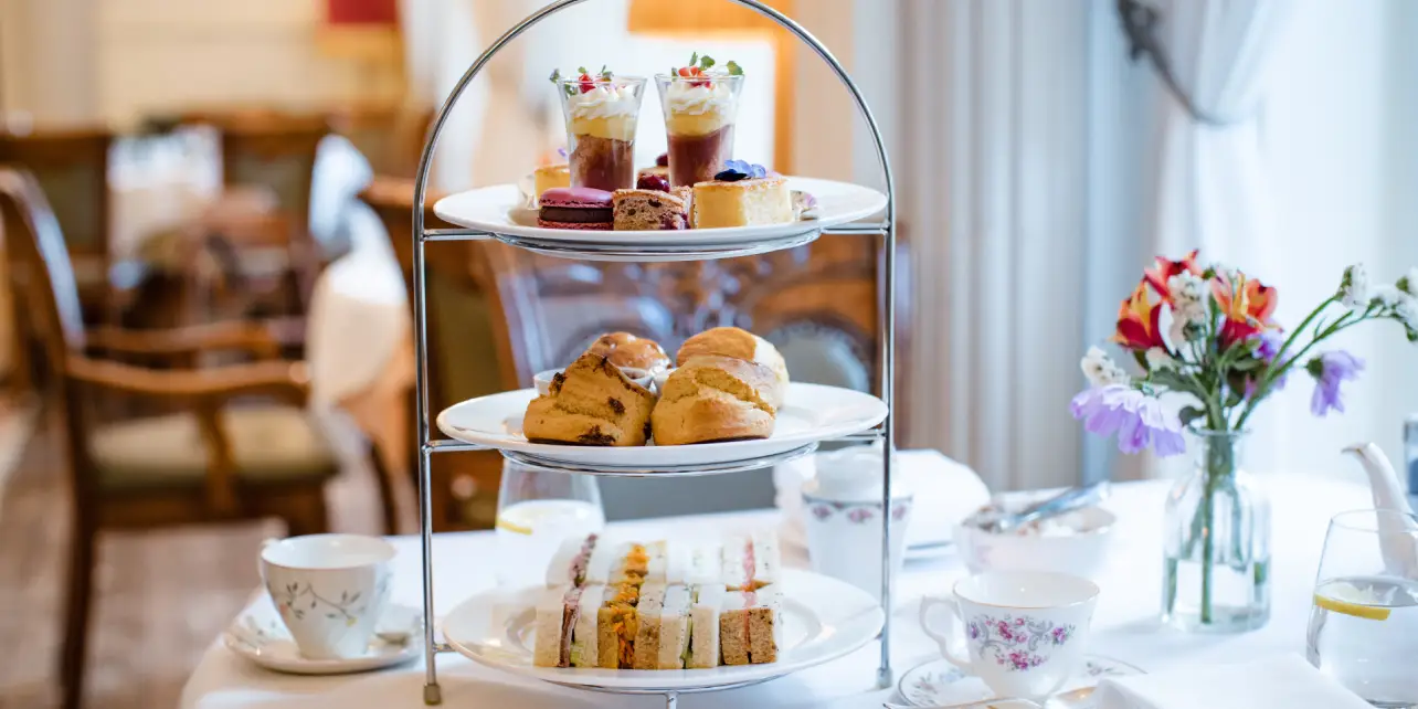Afternoon tea is served in their cosy, wood-paneled lounge or in their beautiful restaurant with floor-to-ceiling windows, both offering fabulous views over the grounds. In autumn and winter, crackling fires create an irresistibly homely atmosphere, while in spring and summer the ritual can be enjoyed outdoors beneath the shelter of their elegant stretch tent.