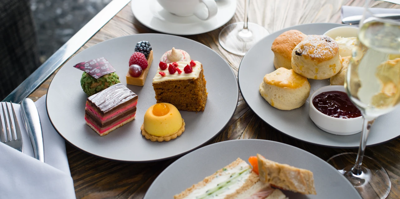 Experience a touch of indulgence with Afternoon Tea at The Belfry. Enjoy a delightful selection of freshly made sandwiches, warm scones with clotted cream and jam, and an array of handcrafted pastries, all served with your choice of fine teas or a glass of fizz in the elegant Brabazon Bar.