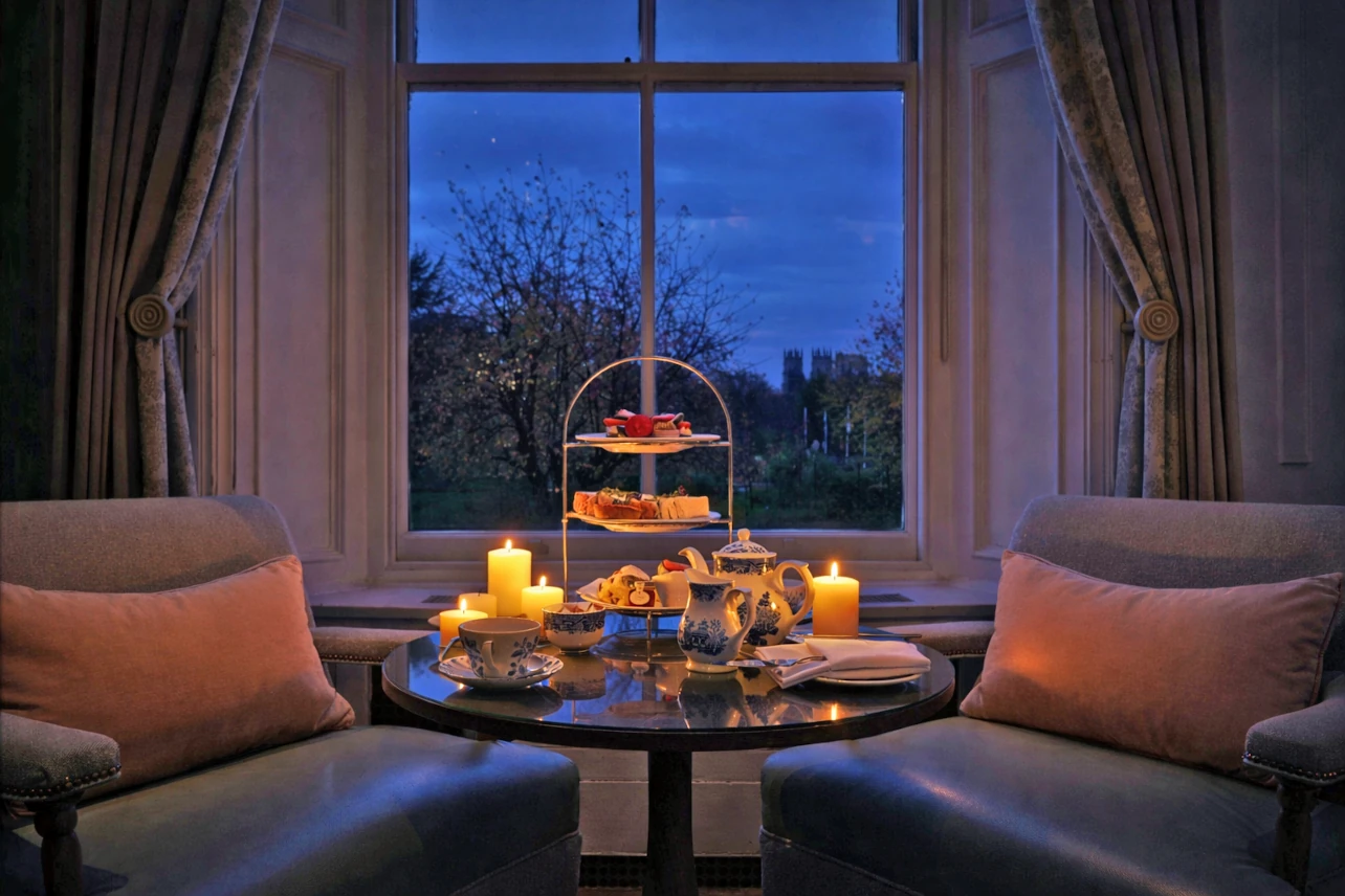 Afternoon Tea is served in The Garden Room, featuring elegant interiors, luxury soft furnishings, and an abundance of natural light. This tranquil setting offers guests the opportunity to enjoy Afternoon Tea while admiring the picturesque views of York Minster with landscaped gardens in the foreground.