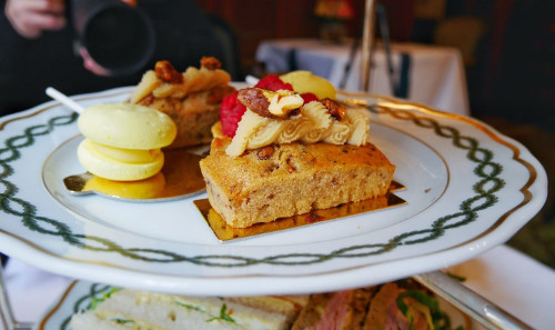 The first tea that we were served was the Assam second flush tea from the Halmari Tea Estate, created from the rare P126A tea bush that produces a golden and tippy tea, giving it a malty rich taste. This was paired with their selection of exquisite hand-cut finger sandwiches which included the classics such as free range egg mayonnaise and Hampshire watercress, honey roast ham and mustard, and Mull of Kintyre Cheddar and tomato, cucumber and cream cheese. My two favourites were most definitely the smoked Scottish salmon and cream cheese on rye bread, and a hearty treat of creamy chicken mayonnaise coated with chopped almonds.