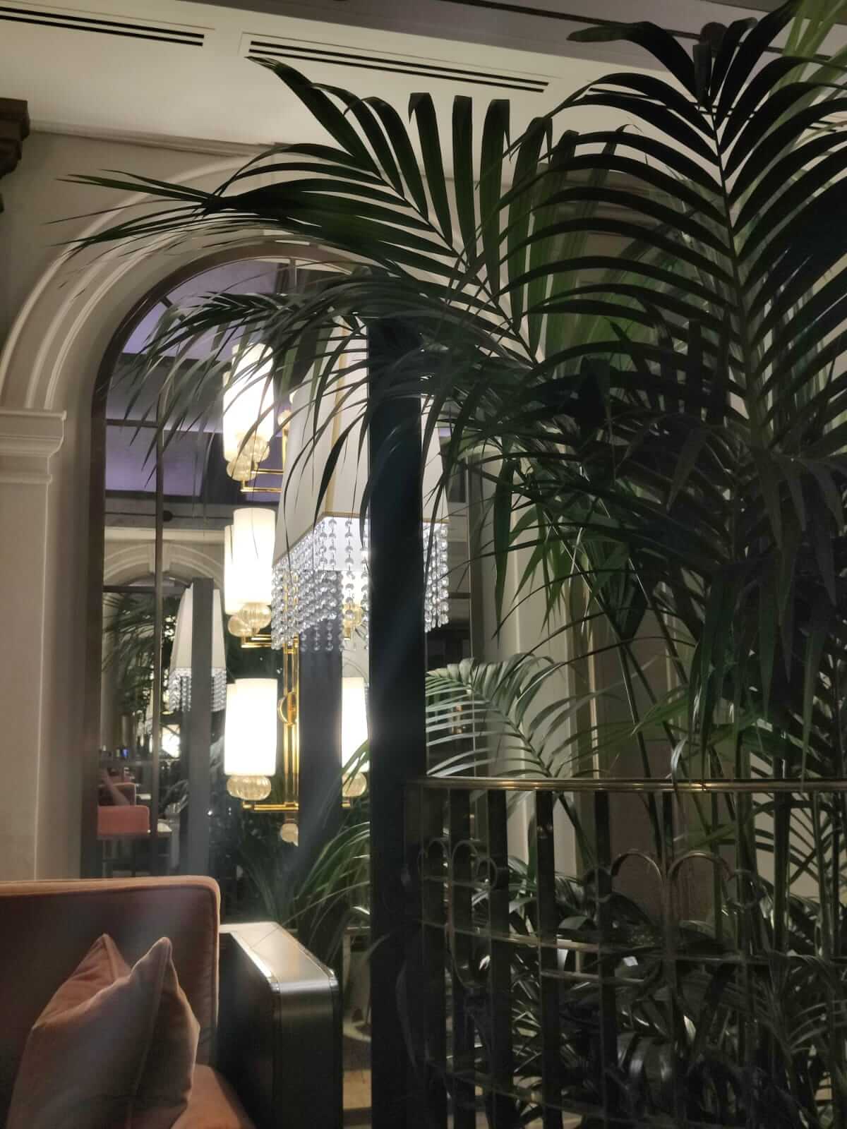 Indeed, The Sheraton Grand hotel, which is itself grand in stature, towering majestically overlooking London’s Green Park, feels luxurious even upon first entering through the doors. Our feet sunk into the squishy, velvety, carpet, and, feeling similarly squishy and velvety ourselves, we glided through the main atrium, past a roaring fire, and into the Palm Court restaurant on the centre of the ground floor. Compared to some afternoon tea locations, we absolutely loved the low, soft lighting, plush furniture, high ceilings, and distinct ‘great gatsby’-eque 1920’s style embellishments and stylishness. The original restaurant opening it’s doors in 1927, the height of the jazz age.