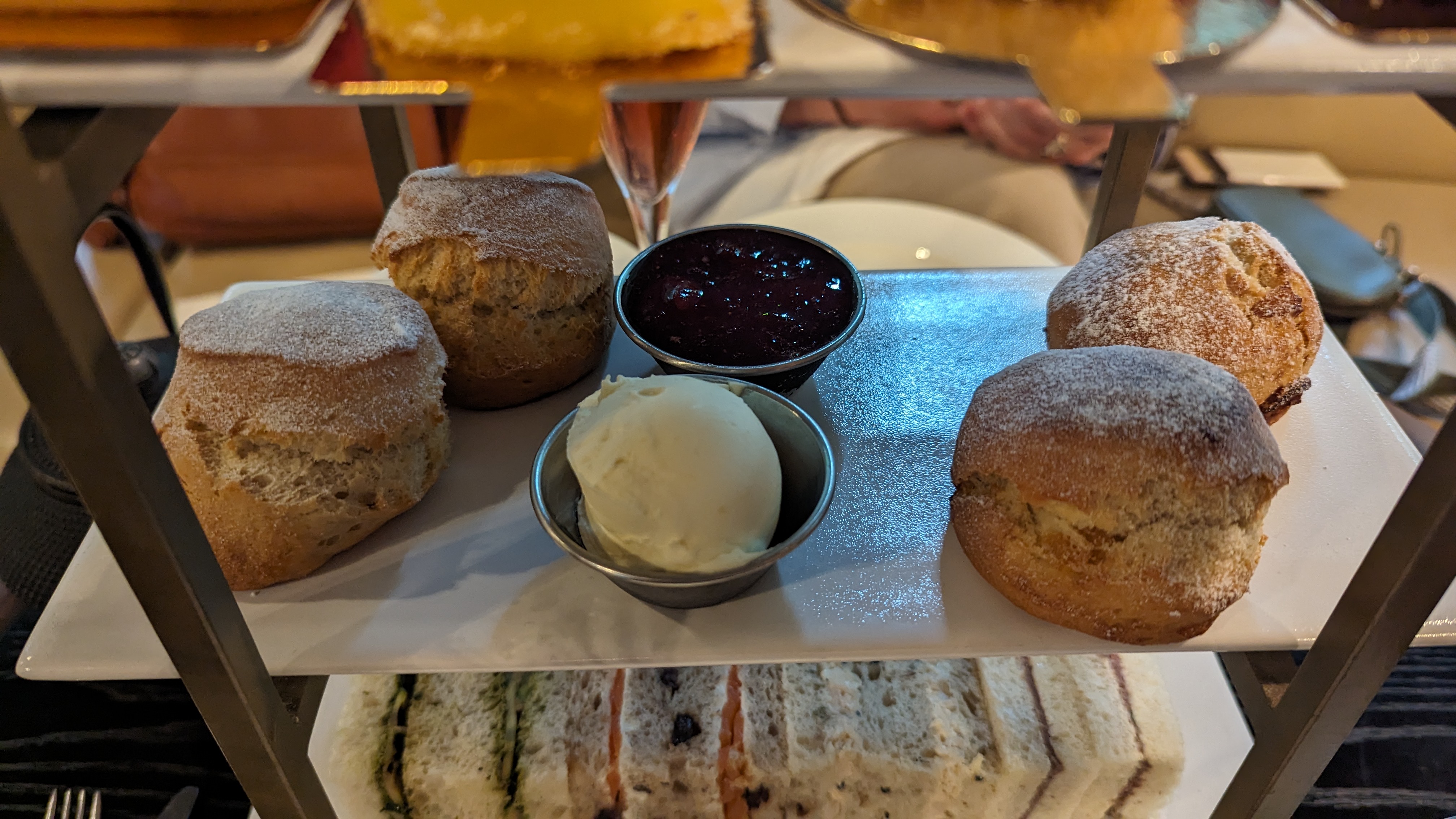 When it comes to the scone course, we usually try to only eat half and box up the rest to take home. In this case, we couldn’t help ourselves and ploughed through even though we knew we’d pay for it later by being ridiculously full. If you visit for the Afternoon Tea at The Library Champagne Bar, I’d like to see you try to resist doing the same! These have the perfect golden sheen on the top, strike the balance of butter and light. They are served with Cornish clotted cream and strawberry and vanilla preserve.