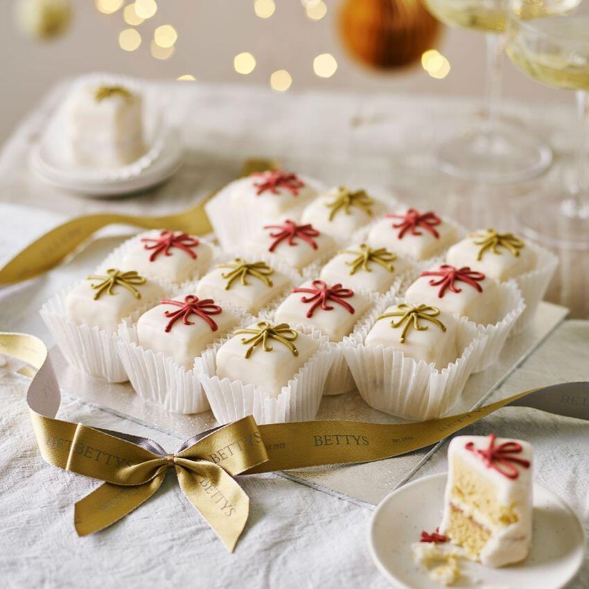 Every celebration calls for extra special treats, and Betty's fondant fancies are the epitome of delightful indulgence. Perfectly pairing with festive festivities, each bite offers a luscious all-butter sponge layered with rich vanilla buttercream, tangy raspberry jam, and smooth fondant icing. A charming and delectable addition to Christmas parties and Boxing Day buffets, they're easy to serve with no slicing required.
