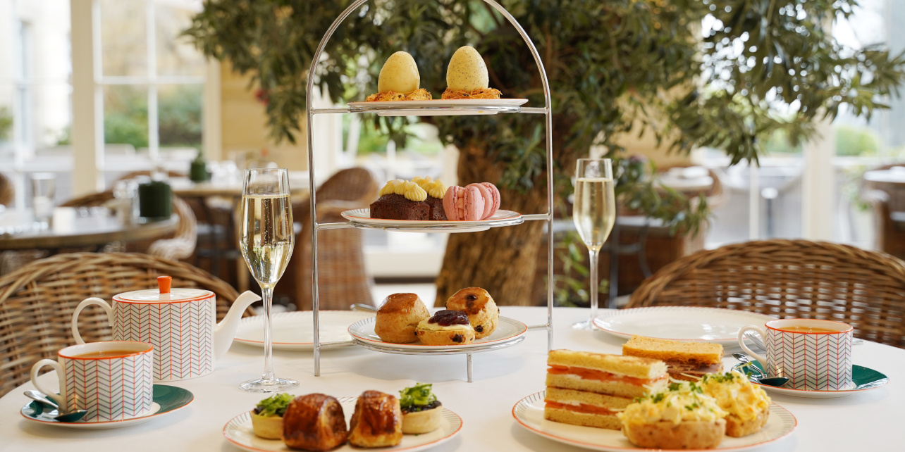 Served in the Conservatory, a light and airy room with a 400-year-old olive tree. Guests can take in views of the gardens, with large patio doors leading out onto the terrace.